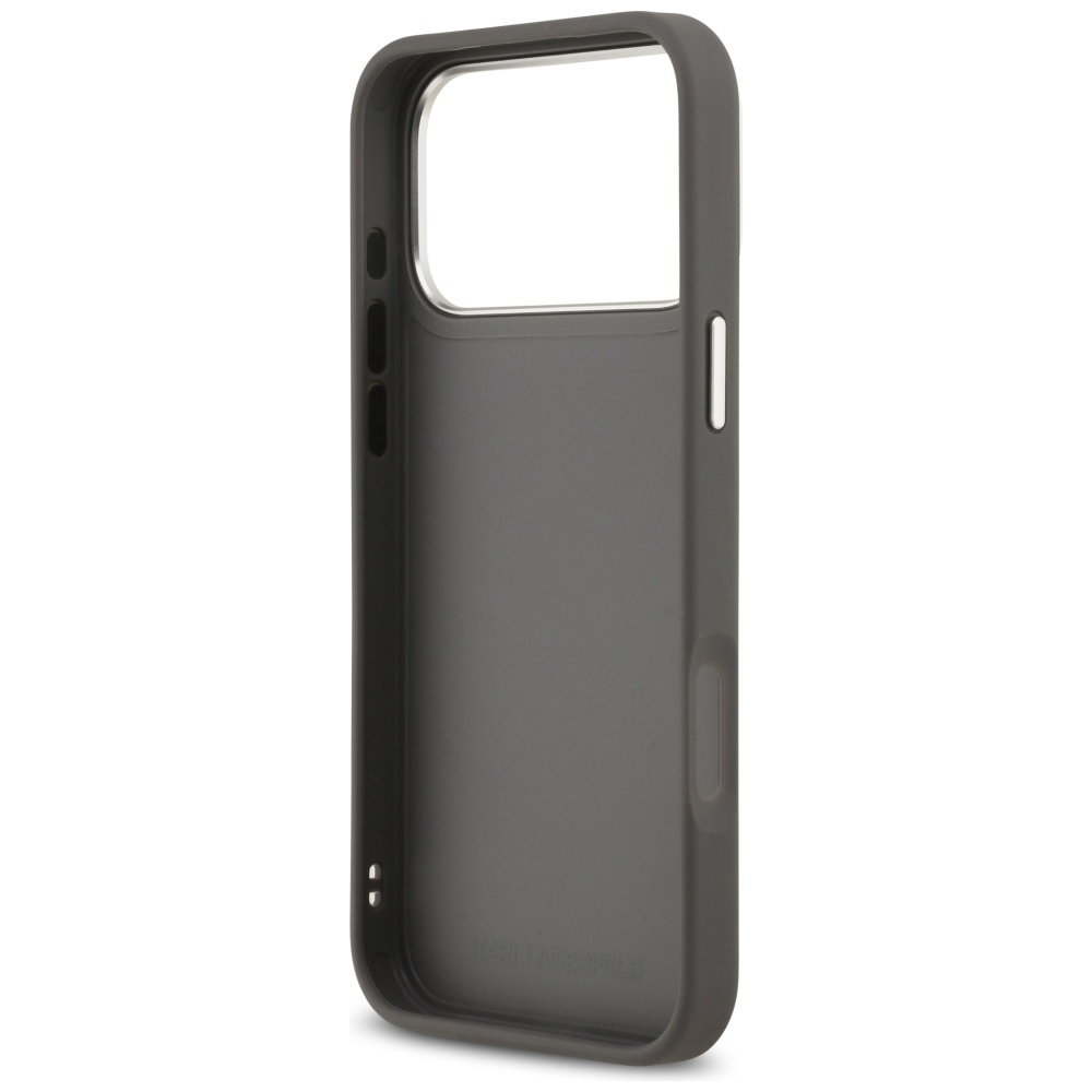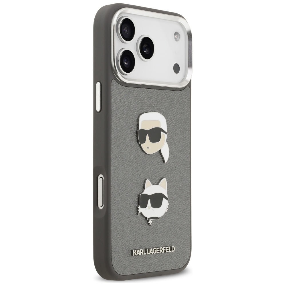 Etui Karl Lagerfeld FW Grained Karl & Choupette Heads Pins & Logo do iPhone 17 Pro Max szary