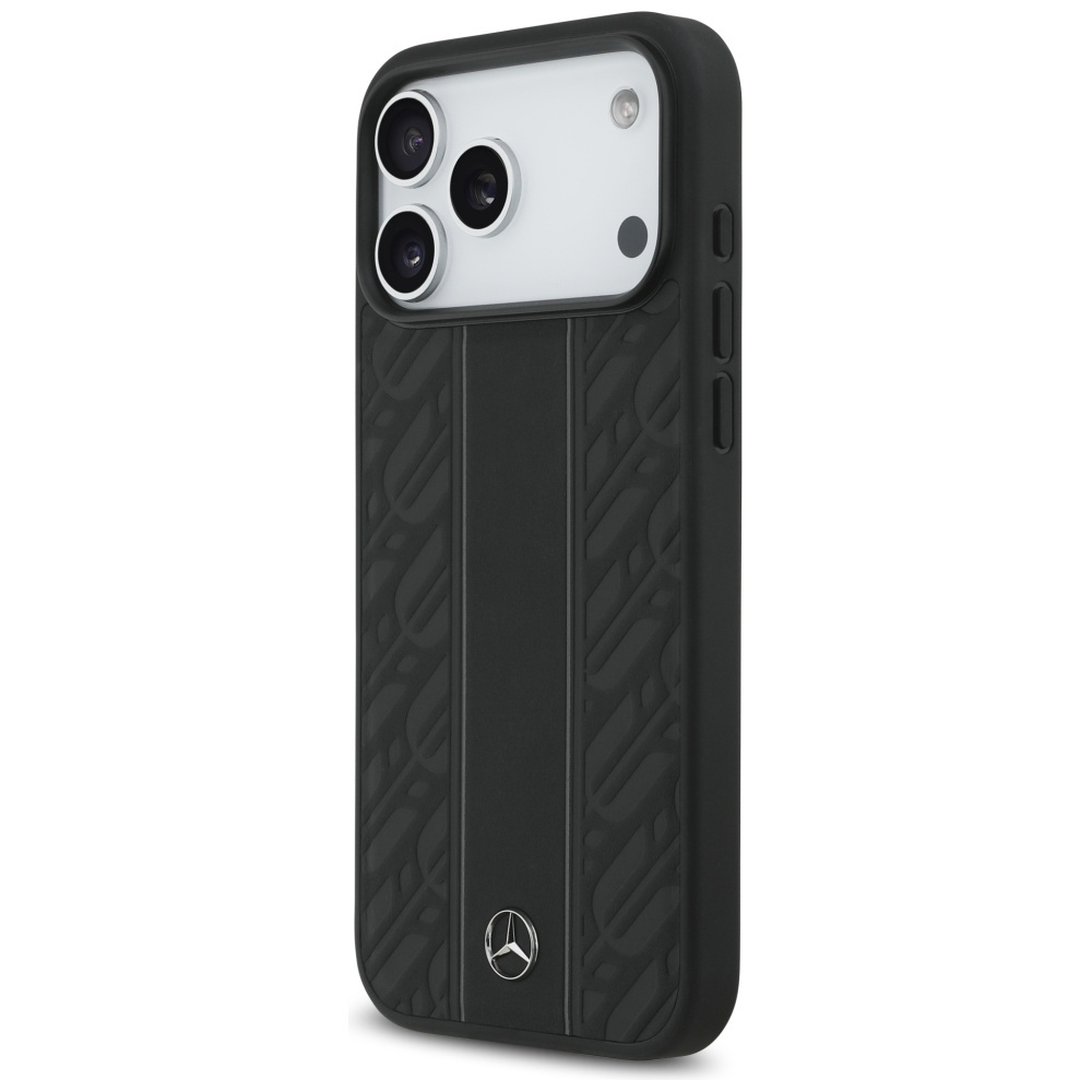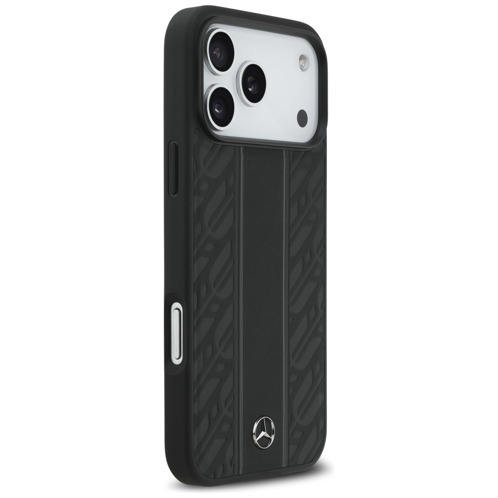 Etui Mercedes Leather Laurel Leaves Stripes MagSafe do iPhone 17 Pro Max czarny