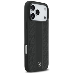 • Etui Mercedes Leather Laurel Leaves      Stripes MagSafe do iPhone 17 Pro Max czarny