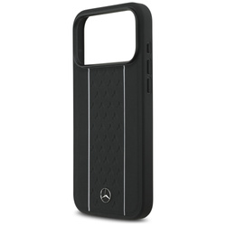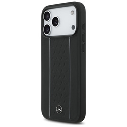 Etui Mercedes Leather Star Pattern Stripes MagSafe do iPhone 17 Pro Max czarny