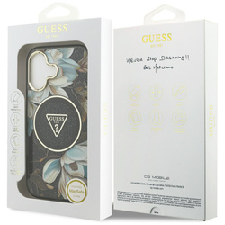• Etui Guess IML Glitter Flowers Triangle  MagSafe do iPhone 17 czarny