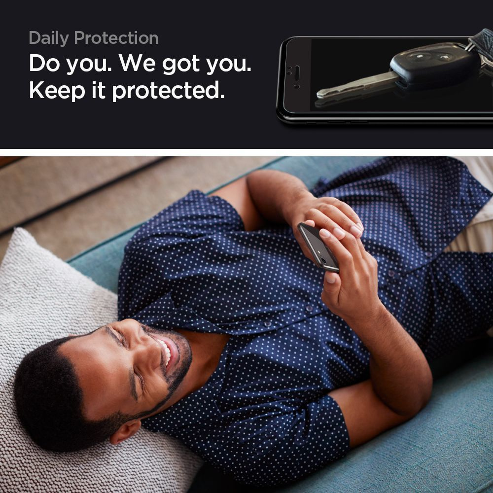 Krystalicznie przejrzyste szkło hartowane Spigen iPhone SE 2022 o najszerszym możliwym wykrojniku dedykowanym do etui. Glass FC świetnie oddaje wyświetlane barwy i nie wpływa na czułość dotyku. Wykonane jest z przetworzonego i wzmocnionego szkła hartowanego o grubości 0,3 mm. Posiada twardość powierzchni (stopień odporności) 9H, dlatego jest niezwykle odporne na zarysowania nawet podczas kontaktu z ostrymi przedmiotami (nóż, klucze). Dodatkowo, pokryte jest specjalną nano powłoką, która zabezpiecza ekran przed zostawianiem odcisków palców lub innych zanieczyszczeń. Glass FC doskonale chroni cenny ekran podczas ekstremalnych upadków. Instalacja jest niezwykle łatwa i przystępna każdemu użytkownikowi.