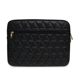 Markowy futerał wykonany jest z wysokiej jakości, delikatnej, pikowanej skóry ekologicznej sygnowanej złotym logo Guess.