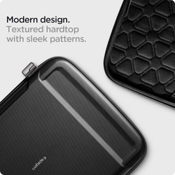 To wyjątkowe etui składa się z kilku warstw ochronnych. Zewnętrzna powłoka wykonana z poliuretanu, odpornego na ścieranie, świetnie absorbuje uderzenia, a miękkie i wytrzymałe pianki od wewnątrz zabezpieczą przenoszone urządzenie przed zarysowaniami oraz wstrząsami. Teksturowe tłoczenia nadają nowoczesne i eleganckie wykończenie całości.