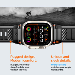 Spigen Rugged Ultra Band został wyposażony w technologię inteligentnego zapięcia. Dzięki temu noszenie zegarka przez cały dzień jest niezwykle komfortowe i bezpieczne.