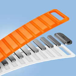 Aż 28 silnych, dwukierunkowych magnesów neodymowych zapewnia bezpieczne oraz regulowane dopasowanie do Twojego nadgarstka, przez co możesz szybko i łatwo zakładać oraz zdejmować zegarek. Mocne mocowanie magnetyczne zostało przetestowane pod kątem wytrzymałości na ciągnięcie do 1,2 kg.