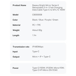 Jeśli posiadasz kilka urządzeń i szukasz optymalnego rozwiązania, aby ładować je wszystkie jednocześnie, kabel marki Baseus jest dla Ciebie świetnym rozwiązaniem. Uniwersalny kabel posiada trzy wtyczki - USB Typu C, Lightning dla urządzeń Apple oraz micro USB.