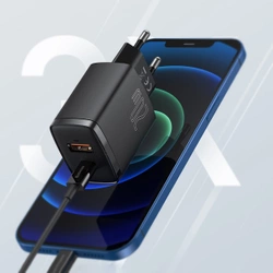 Ładowarka od Baseus pozwoli Ci zrezygnować z noszenia ze sobą dwóch ładowarek. Wszystko za sprawą specjalnego projektu. W górnej części wtyczki znajdują się dwa wejścia USB, pierwsze z nich jest typu C, natomiast drugie typu A. Dzięki temu rozwiązaniu, możesz zrezygnować z dwóch osobnych ładowarek i zastąpić ją jedną, co jest zdecydowanie praktyczniejsze i zajmuje mniej miejsca w torebce czy plecaku. Dodatkową zaletą tego rozwiązania jest możliwość ładowania dwóch urządzeń jednocześnie, zajmując wyłącznie jedno gniazdko.