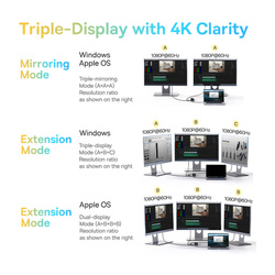 - Windows: 3 monitory bez ekranu komputera (A+B+C) 4K@30Hz