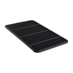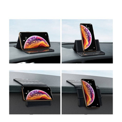 Elastyczna mata jest wykonana z miękkiego tworzywa sztucznego, a jej powierzchnię wykończono specjalną fakturą. Dzięki materiałowi i strukturze, doskonale przylega do gładkich powierzchni. Jeśli umieścisz ją na desce rozdzielczej, będzie idealnym uchwytem na zegarek, kabel czy ładowarkę samochodową.