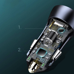 Potrzebujesz ładowarki samochodowej, która szybko naładuje dwa urządzenia w tym samym czasie? Podczas jazdy podepnij je do gadżetu Baseus wyposażonego w port USB i USB Typu C. Wspiera ono protokoły szybkiego ładowania Xiaomi i Samsung, ponieważ ma wbudowaną technologię BPS II fast.