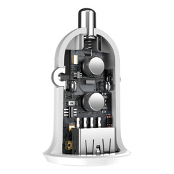 Mała ładowarka samochodowa może mieć wielką moc. Udowadnia to produkt marki Baseus wyposażony w dwa porty USB do ładowania. Łączna moc, z jaką może pracować i ładować dwa urządzenia to nawet 4,8A. Szybko i bezpiecznie dzięki zastosowaniu aż 6 inteligentnych zabezpieczeń.