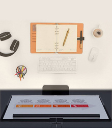 Po włączeniu lampka rzuca taką ilość światła, która jest odpowiednia do oświetlenia monitora, klawiatury i części blatu roboczego. Dlatego dzięki niej możliwe jest robienie notatek i czytanie nie tylko na ekranie, ale też wersji papierowych, jakie masz przed sobą.