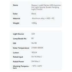 Baseus i-wok2 lampka LED na monitor do pulpitu na USB - czarna