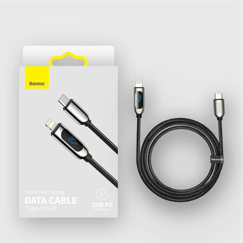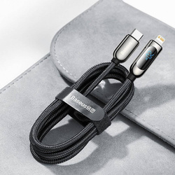 Baseus kabel do szybkiego ładowania USB Typ C - Lightning 20W Power Delivery z wyświetlaczem ekranem miernik mocy 2m czarny (CATLSK-A01)