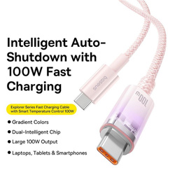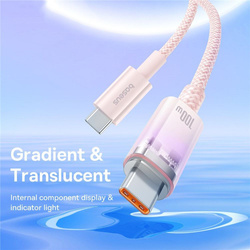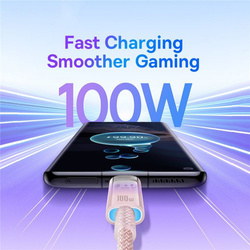 Szybki kabel Baseus do ładowania i transmisji danych ze złączami USB-C – USB-C. Wspiera funkcję szybkiego ładowania Power Delivery 100 W.