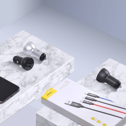 Baseus zestaw ładowarka samochodowa 2x USB 4,8A 24W z LCD + kabel 3w1 USB - USB Typ C / micro USB / Lightning 1,2m: