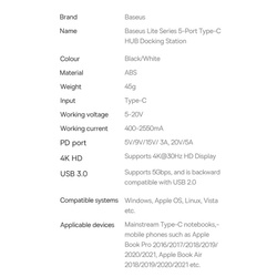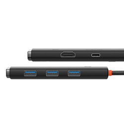 • Baseus Lite Series 5-Port Type-C HUB Docking Station (Type-C to HDMI+USB3.0*3+PD) Black