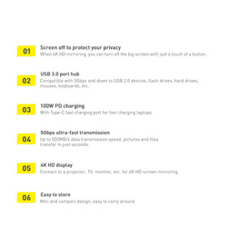 • Baseus Lite Series 6-Port Type-C HUB Docking Station (Type-C to HDMI+USB3.0*2+PD+SD/TF) Black