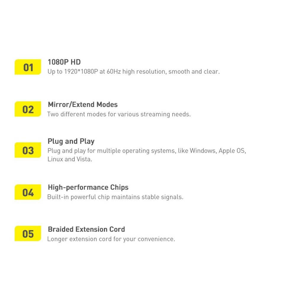 Akcesorium wspiera rozdzielczość do 1080P, zarówno na wejściu (HDMI), jak i wyjściu gadżetu (VGA). Niezależnie od tego czy przesyłasz sygnał z konsoli, laptopa czy TV boxa, zawsze będzie on wysokiej jakości i to pomimo ograniczeń starszego złącza. Ostry jak brzytwa obraz podczas wirtualnej rozgrywki, oglądania filmów czy prowadzenia prezentacji. Jednym zdaniem, zawsze i wszędzie.