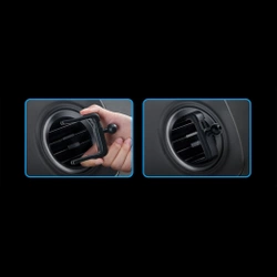 Uchwyt grawitacyjny marki Baseus to akcesorium idealne dla wymagających kierowców. Uchwyt dysponuje systemem mocowania do okrągłej kratki nawiewu. Dzięki temu łatwo zamontujesz go w swoim samochodzie i będzie lepiej pasował niż w przypadku zwykłych uchwytów. Ten uchwyt charakteryzuje się mechanicznym mechanizmem mocowania do ramki nawiewu. Jest więc niezwykle trwały i bardzo prosty w obsłudze. Wystarczy, że odłożysz telefon na panel, a szczęki zacisną się automatycznie z optymalną siłą, skutecznie utrzymując telefon w stabilnej pozycji.