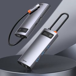 Baseus Metal Gleam 6w1 wielofunkcyjny HUB USB Typ C - USB Typ C Power Delivery 100 W / HDMI 4K 30 Hz / 3x USB 3.2 Gen 1 / RJ45 1 Gbps