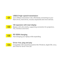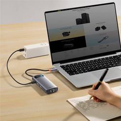 Gadżet od marki Baseus pozwoli Ci na w pełni swobodną pracę lub zabawę. Wszystko dzięki dużej liczbie dostępnych portów oraz gniazd. Nowe laptopy często nie mają wystarczającej ilość gniazd USB lub HDMI. Dzięki HUBowi Baseus nie musisz się martwić ich brakiem. Dodatkowo znajdziesz w nim port Ethernet RJ-45.