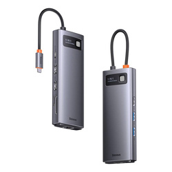 Baseus Metal Gleam Series stacja dokująca HUB 9 w 1 USB Typ C - 2 x HDMI / 2 x USB 3.2 Gen. 1 / 1 x USB 2.0 / 1 x Power Delivery / 1 x czytnik kart SD / 1 x czytnik kart TF / 1 x RJ-45 szary (WKWG060013)