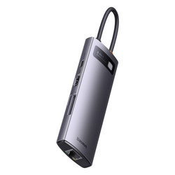 Baseus StarJoy HUB 8-Portowy USB-C - 3x USB-A / 1x HDMI / 1x RJ45 / 1x SD/TF / 1x USB-C PD szary