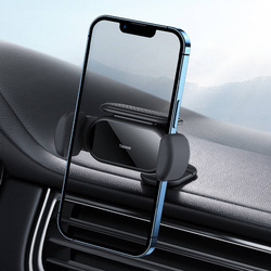 Uchwyt marki Baseus jest wielkości 1/5 typowych uchwytów. Minimalistyczny gadżet będzie się dobrze prezentował w samochodzie, jednocześnie nie blokując całej kratki wentylacyjnej.