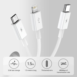 Baseus Superior 3w1 kabel USB - Lightning / USB Typ C / micro USB (ładowanie 3,5 A / przesyłanie danych 480 Mbps) 1,5 m