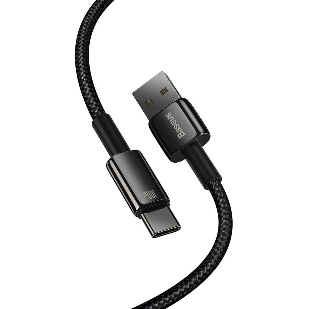 Baseus Tungsten Gold kabel USB-A - USB-C 480Mb/s 100W 1m czarny (CAWJ000001)