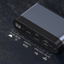 Do obsługi wielu urządzeń w domu i biurze doskonale sprawdzi się wielofunkcyjny HUB marki Baseus. Urządzenie powstało w odpowiedzi na oczekiwania współczesnych użytkowników, którzy chcą swobodnie korzystać ze swoich sprzętów elektronicznych i łączyć je między sobą. Stacja wyposażona w czytnik kart SD i Micro SD, kartę sieciową, dodatkowe porty USB i USB Typ C, 2x HDMI, 2x DisplayPort co pozwala na podłączenie do komputera nawet 4 dodatkowych monitorów! Łącznie ma aż 16 wejść. Praca i rozrywka wchodzą teraz na znacznie wyższy poziom niż miało to miejsce kiedykolwiek wcześniej.