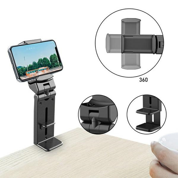 Uchwyt umożliwia pełną rotację o 360 stopni, co pozwala na swobodne ustawienie telefonu pod dowolnym kątem. Funkcja ta jest niezwykle przydatna podczas oglądania filmów czy prowadzenia wideorozmów. Użytkownik może łatwo dostosować położenie telefonu do swoich potrzeb, zapewniając sobie maksymalny komfort użytkowania.