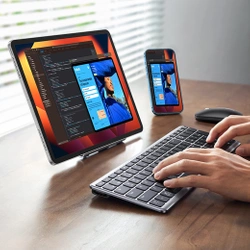 Możesz zapomnieć o irytujących kablach! Klawiatura KU005 obsługuje połączenie Bluetooth w wersji 5.0, zapewniając stabilne, szybkie połączenie z Twoimi urządzeniami! Co więcej, obsługuje aż 4 sprzęty jednocześnie, dając Ci pełen komfort i elastyczność w pracy, czy podczas rozrywki.