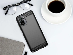 Carbon Case to wytrzymałe etui z eleganckimi wykończeniami imitującymi szczotkowany metal. Wykonany z wysokiej jakości materiałów (TPU) pokrowiec, który doskonale ochroni telefon przed upadkami, zarysowaniami czy brudem. Absorbuje wstrząsy, a specjalna struktura wewnątrz akcesorium pomaga rozłożyć siłę uderzenia. Do tego podwyższone krawędzie wokół ekranu i obiektywu aparatu oraz duże, responsywne przyciski.