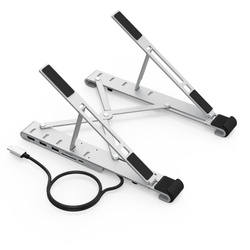 Choetech to rewelacyjny i ergonomiczny, składany stojak na laptopa typu Hub-Stand. Jest wyposażony w szereg różnych portów, co znacznie zwiększa produktywność w czasie pracy. Sama podkładka jest ultralekka, designerska, stabilna. Wyregulujesz ją zgodnie ze swoimi preferencjami, ustawiając idealny kąt patrzenia na jednym z pięciu poziomów. Korzystasz z gadżetu wygodnie jak chcesz i gdzie chcesz – przy biurku, w łóżku i w podróży!
