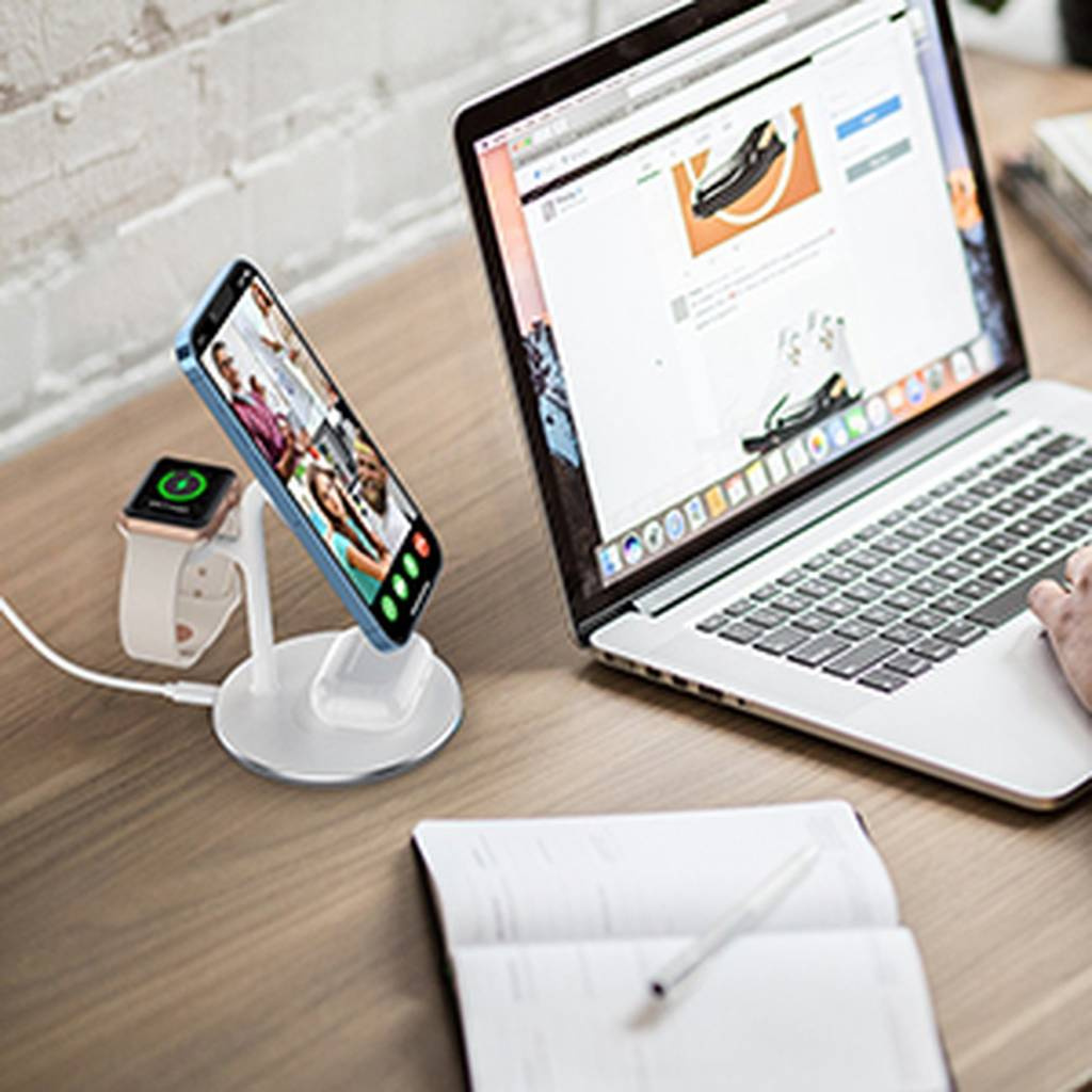 Ładowarka indukcyjna Choetech została wykonana z elementów ze stopu cynku oraz materiału PC, ABS i silikonu. Dzięki niewielkim rozmiarom produkt wpasuje się w dowolną przestrzeń na biurku, stole, półce, czy szafce. Ładowarka jest kompatybilna z produktami firmy Apple (iPhone 12/13, Apple Watch, AirPods). Produkt może służyć również jako uchwyt/stojak dla naszego sprzętu elektronicznego.