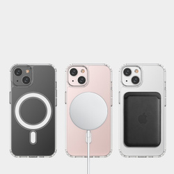 Pokrowiec został wyposażony w magnes, dzięki któremu etui jest kompatybilne z akcesoriami MagSafe. Jest to zupełnie nowy standard szybkiego i prostego podłączania akcesoriów i ładowarek bezprzewodowych. Ma bardzo duże możliwości i może współpracować z wieloma nowoczesnymi akcesoriami.