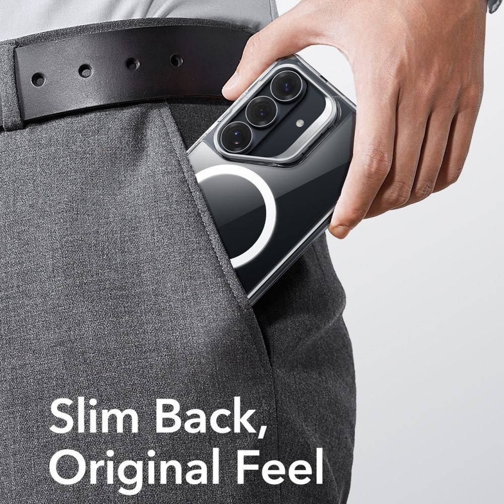 ESR Classic Hybrid Kickstand MagSafe to zaawansowane etui łączące ochronę z funkcjonalnością przy zachowaniu minimalistycznego, smukłego kształtu. Mocne plecki wykonane z poliwęglanu i akrylu w połączeniu z elastyczną ramką TPU zapewniają solidną ochronę, nie pogrubiając telefonu ani nie odbierając mu uroku. Wzmocnione narożniki skutecznie absorbują uderzenia, zamieniając potencjalne upadki w element codziennego użytkowania.