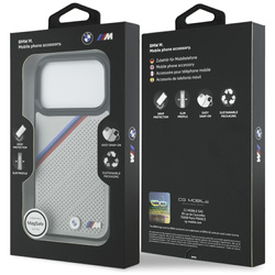 Etui BMW M Tricolor Metal Logo MagSafe do iPhone 17 Pro szary