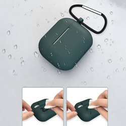 Silikonowe etui do AirPods 3 występuje w kilku wyjątkowych, eleganckich kolorach. Dołączony do zestawu karabińczyk ma klasyczny czarny kolor.