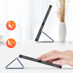 Elegancki design etui Dux Ducis Domo sprawia, że jest idealnym dodatkiem na każdą okazję: od spotkań biznesowych po casualowe rozmowy. Dzięki zamkniętej konstrukcji z klapką zapewnia doskonałą ochronę tabletu z każdej strony. Możliwość zmiany w wygodną podstawkę ułatwia oglądanie filmów czy przeglądanie zdjęć. Inteligentna funkcja smart sleep oszczędza energię przez wygodne wybudzanie i usypianie tabletu. Delikatnie podniesione krawędzie chronią ekran i obiektyw aparatu, a precyzyjne wycięcia zapewniają łatwy dostęp do wszystkich portów i przycisków. System odprowadzania powietrza sprawi, że tablet nie przegrzeje się.