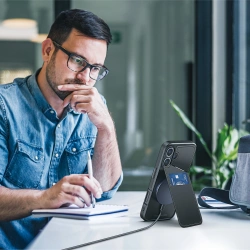 - Umożliwia wygodne ustawienie telefonu w pionie. Wbudowana podstawka pozwala na ustawienie telefonu pod kątem do 135°.