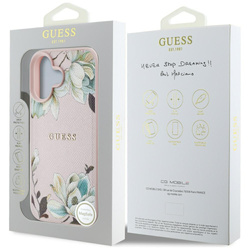 • Etui Guess Grained Printed Flower         Pattern MagSafe do iPhone 16 różowy