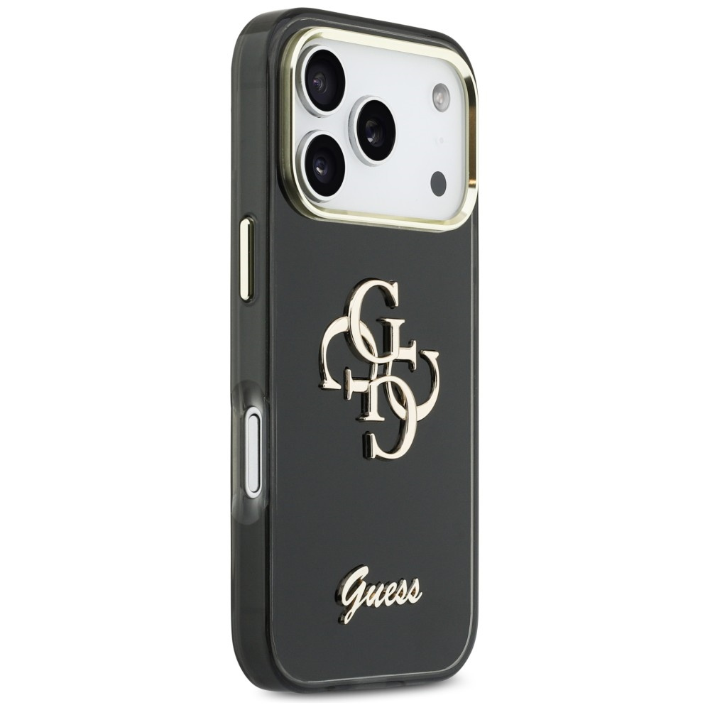 Etui Guess z kolekcji Etui Guess IML 4G Script Metal charakteryzuje elegancki, rozpoznawalny emblemat 4G sygnowany logo GUESS.