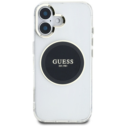 Etui Guess IML Metal Colored Circle Classic Logo MagSafe do iPhone 16 czarny