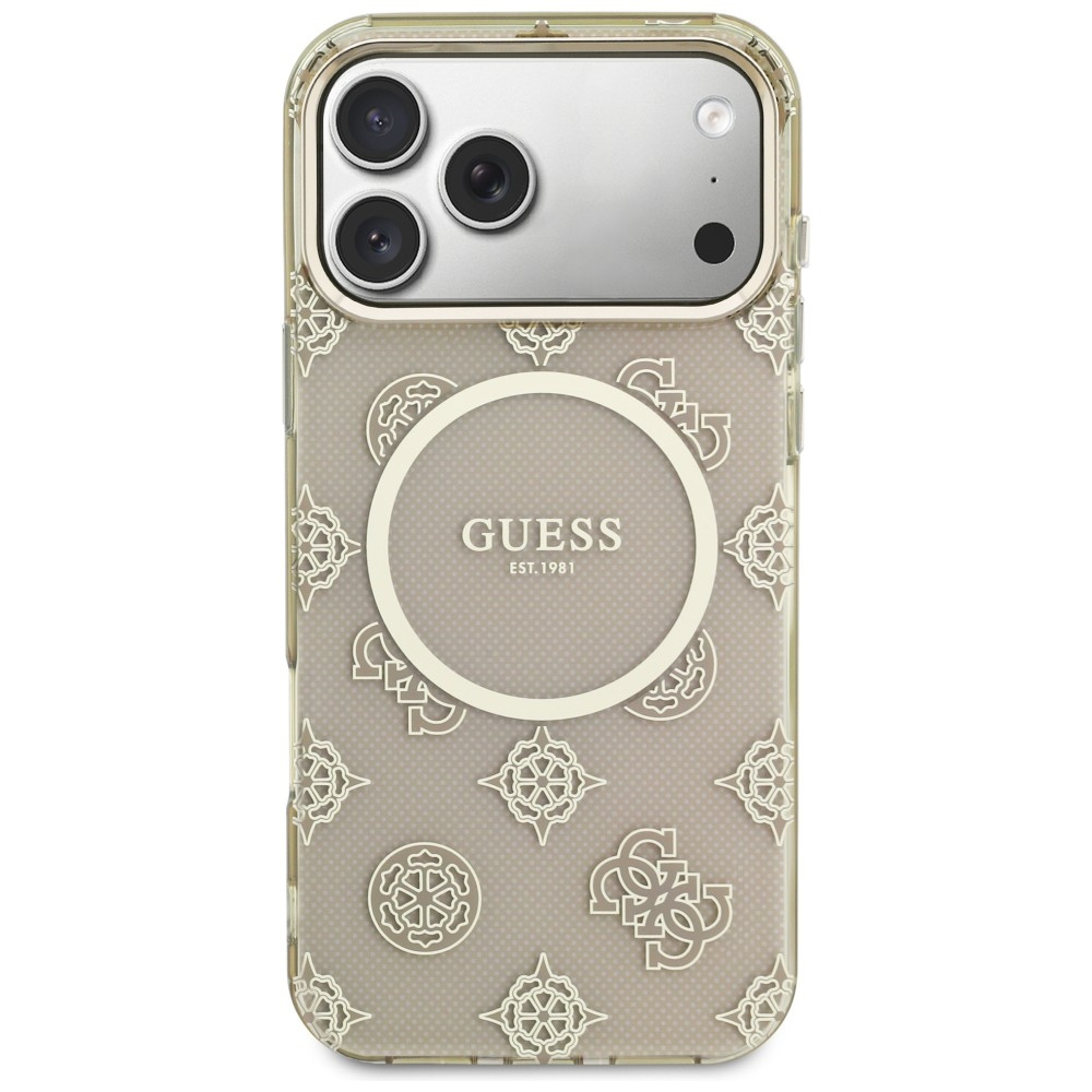 Ekskluzywne etui ochronne od renomowanej marki Guess to połączenie elegancji i stylu na najwyższym poziomie. Etui wykonano z wysokiej jakości poliwęglanu oraz poliuretanu. Powierzchnię zdobi charakterystyczny wzór 4G oraz pierścień MagSafe.