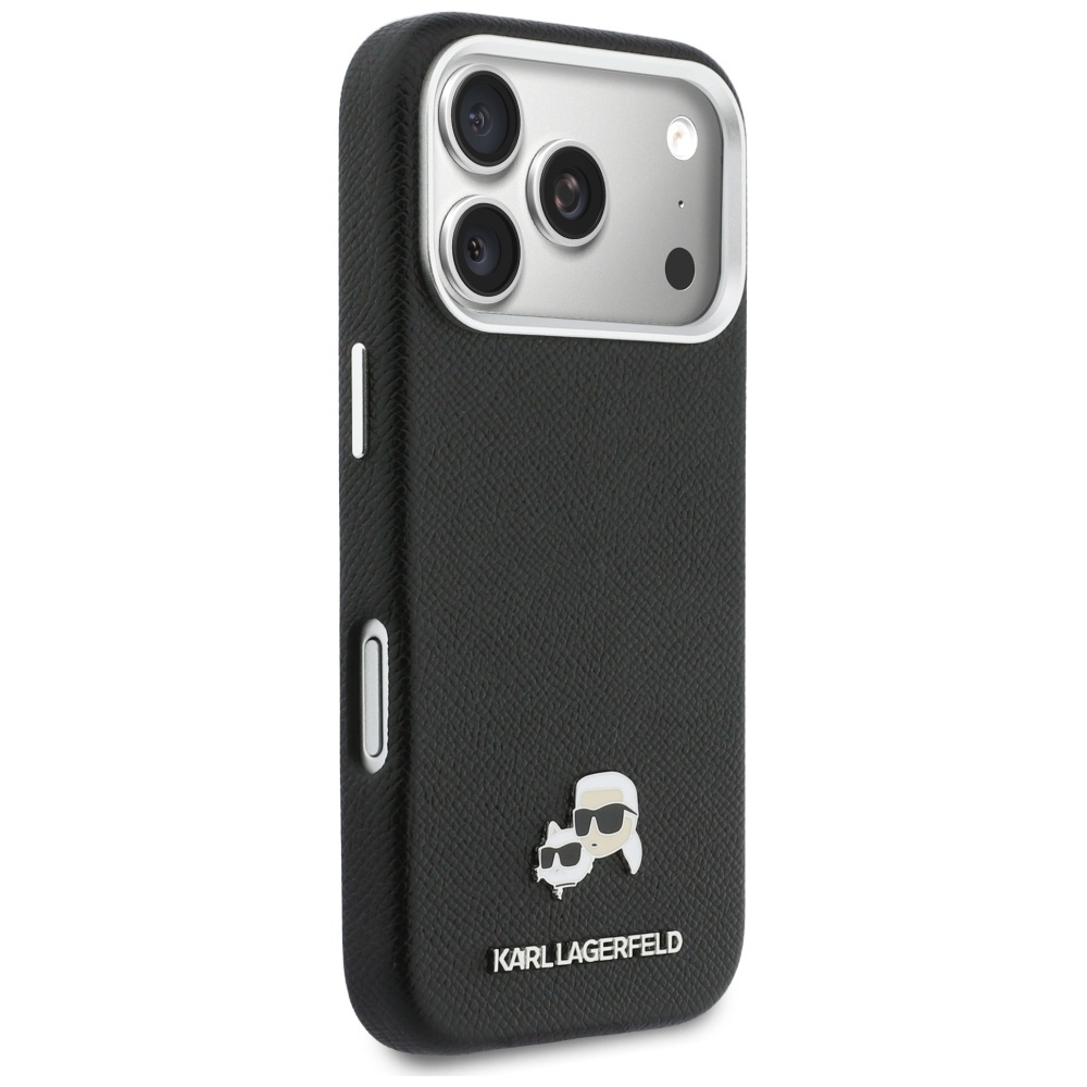 Etui Karl Lagerfeld Karl & Choupette Head Pins Saffiano MagSafe do iPhone 17 Pro czarny