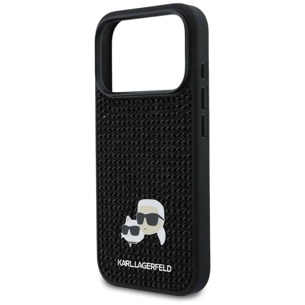 Kolekcja Rhinestones Karl&Choupette Pin to połączenie elegancji i luksusu. Etui ozdobione jest cyrkoniami, a na jego powierzchni znajduje się pin przedstawiający postacie Karla Lagerfelda i jego ukochaną kotkę Choupette. Na dole etui widnieje subtelne logo KARL LAGERFELD, które dopełnia cały design.
